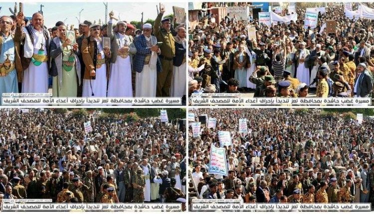 احتشد الآلاف من أبناء محافظة تعز، الأربعاء، في مسيرة ووقفة حاشدة تحت شعار “مسيرة غضب شعب الإيمان ضد من أحرقوا القرآن”.