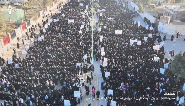 شهدت أمانة العاصمة صنعاء، الأربعاء، مسيرة نسائية حاشدة تنديداً بجريمة إحراق نسخة من المصحف الشريف في السويد.