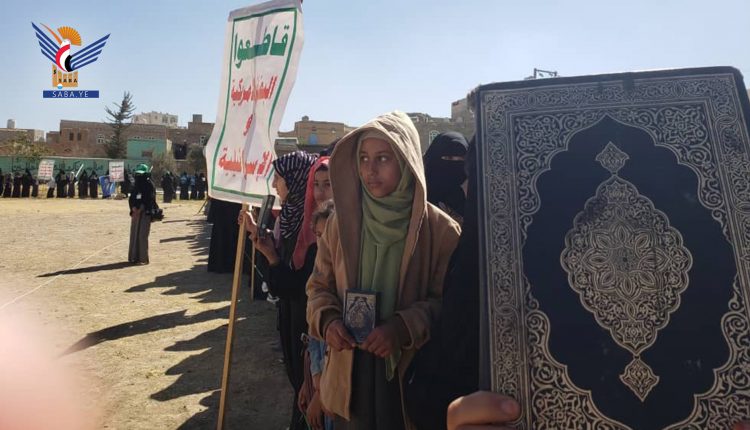 الصمود | نظمت الهيئة النسائية العامة الثقافية بمحافظة عمران، اليوم، وقفة احتجاجية ومسيرة غاضبة تستنكر إقدام المتطرفين في السويد وهولندا على إحراق نسخة من المصحف الشريف.