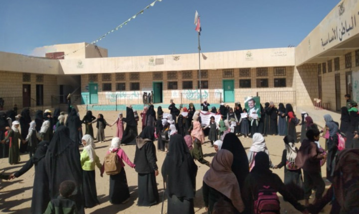نظمت الهيئة النسائية الثقافية العامة بمحافظة الجوف، الجمعة، ثلاث وقفات في مديريات برط العنان والحزم والزاهر تنديداً بجريمة إحراق المصحف الشريف.