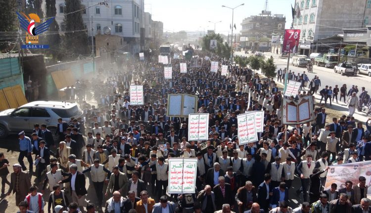 ذمار.. مسيرة طلابية حاشدة تندد بإحراق نسخ من القرآن الكريم