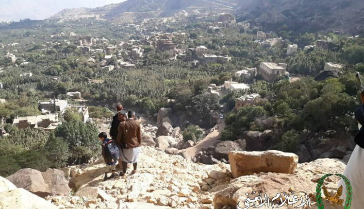 انهارت كتل صخرية كبيرة على الطريق وجوار بعض المنازل في منطقة المحجر بعزلة الأهجر في مديرية شبام بمحافظة المحويت.