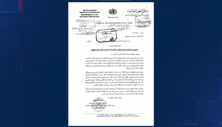 وأظهرت المخاطبات، التي حصلت عليها قناة المسيرة، طلب منظمة الصحة العالمية من وزارة الصحة بصنعاء، البحث عن تمويل محلي، بعد عام من الانتظار ونفاد مخزون مراكز الغسيل الكلوي.