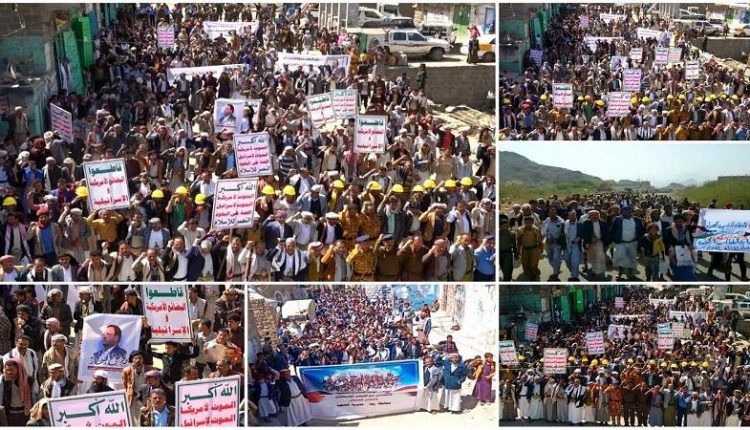 ريمة.. مسيرات حاشدة وفاءً للشهيد الصماد وتضامناً مع الشعب الفلسطيني