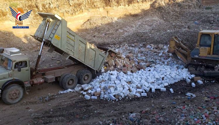 وأوضح مدير مكتب الصحة في الأمانة، الدكتور مطهر المروني، أن إتلاف هذه الكمية من الأدوية والأغذية تم يوم الخميس الماضي وفقاً للإجراءات القانونية بمشاركة النيابة العامة.