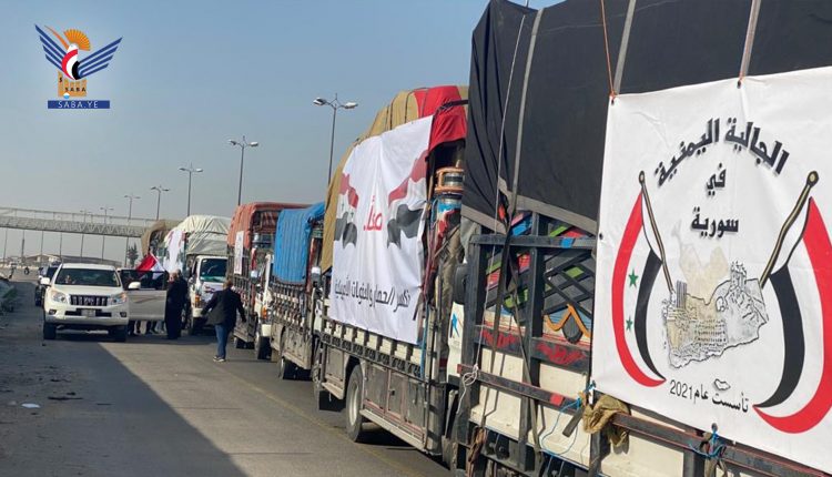 انطلقت اليوم من أمام مقر السفارة اليمنية بدمشق، قافلة إغاثية مقدمة من الجالية اليمنية في سورية إلى المتضررين من الزلزال بمحافظة حلب، تحت شعار “من اليمن إلى الشام كلنا مقاومة”.