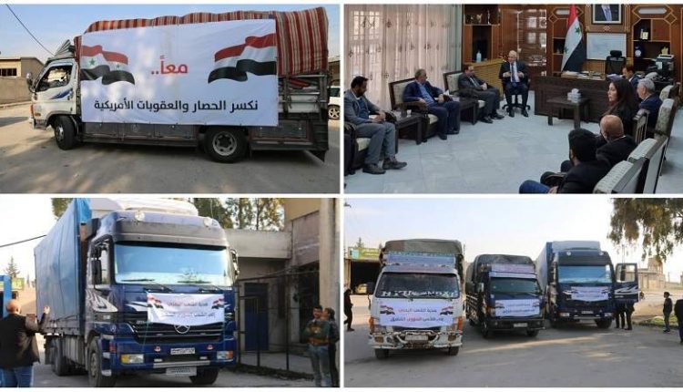 تحتوي القافلة الإغاثية على ست شاحنات، محملة بمواد متنوعة من المساعدات للمتضررين من الزلزال المدّمر الذي ضرب سوريا مؤخراً.