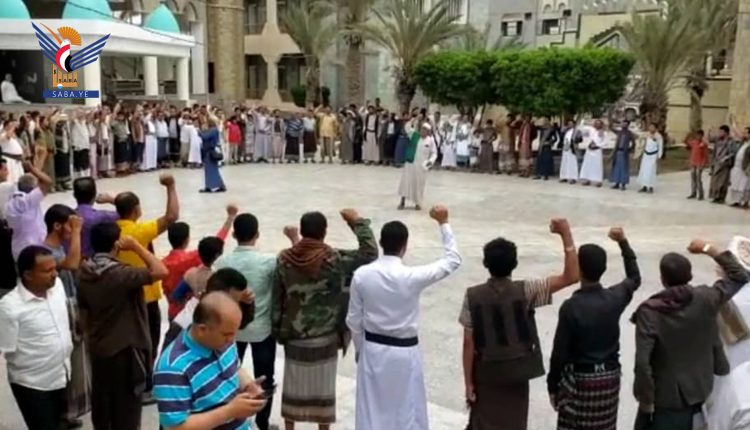 وطالب المشاركون في الوقفات، برحيل قوى العدوان من المحافظات المحتلة والكف عن نهب ثروات وخيرات اليمن، مجددين الصمود في مواجهة المحتلين وفي مقدمتها أمريكا التي تقود الحرب على الشعب اليمني لتحقيق أطماعها الاستعمارية.