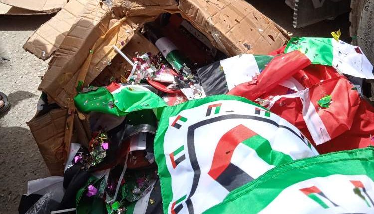 وأشار الناطق الرسمي باسم لجنة الاعتصام السلمي لأبناء المهرة علي مبارك محامد، في تغريدة على صفحته الشخصية بـ”تويتر”، إلى احتجاز شاحنة تحمل أعلاماً وملصقات لدويلة الاحتلال الإماراتي في منفذ شحن الحدودي مع سلطنة عمان، وذلك بالتزامن مع وصول قيادات مرتزقة في ما يسمى “الإنتقالي” إلى عدن وشبوة والمهرة، قادمه من الخارج.