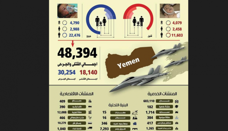 مركز عين الإنسانية يكشف عن إحصائية 8 أعوام من العدوان الأمريكي السعودي على اليمن