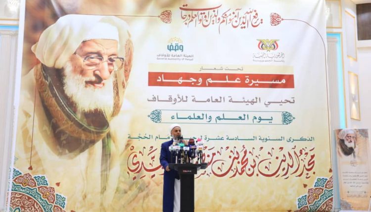 نظمت الهيئة العامة للأوقاف، فعالية خطابية بصنعاء، إحياء للذكرى السنوية الـ 16 لرحيل الإمام الحجة مجد الدين المؤيدي تحت شعار “مسيرة علم وجهاد”.