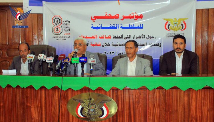 وكشف المؤتمر الصحفي عن القضايا المنجزة لدى المحاكم الابتدائية والاستئنافية خلال سنوات العدوان الثمان، والتي بلغت 573 ألفاً و369 قضية من إجمالي 625 ألفاً و676 قضية بنسبة إنجاز بلغت 91.5% .