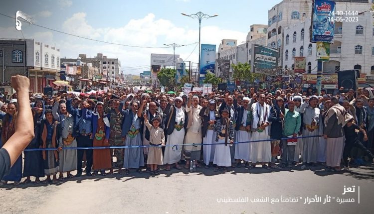 مسيرة جماهيرية بمحافظة تعز تضامناً مع الشعب الفلسطيني