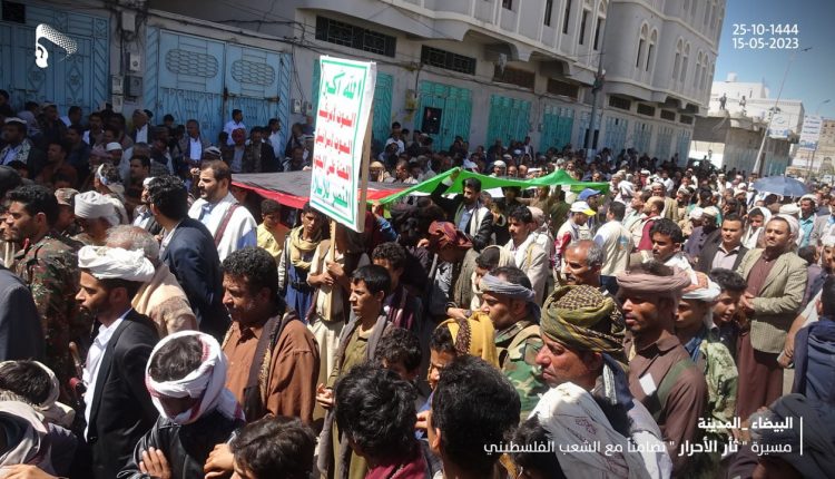 مسيرة جماهيرية حاشدة في البيضاء تضامناً مع الشعب الفلسطيني
