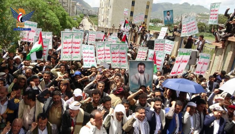 ورددوا الهتافات المؤيدة للمقاومة الفلسطينية، والمؤكدة على أن القضية الفلسطينية، ستظل القضية الأولى للشعب اليمني رغم العدوان الأمريكي السعودي الإماراتي.