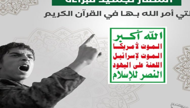 (الله أكبر – الموت لأمريكا / الموت لإسرائيل/ اللعنة على اليهود – النصر للإسلام)