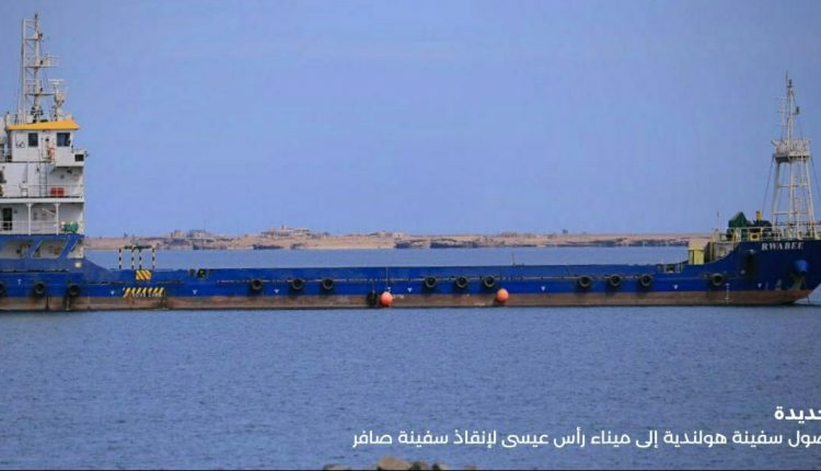حيث وصلت إلى ميناء راس عيسى في محافظة الحديدة، اليوم، سفينة هولندية لإنقاذ وصيانة سفينة صافر في إطار المعالجات المتخذة لتأمين الخزان العائم، والعمل على تفادي حدوث تسرب نفطي في البحر الأحمر.