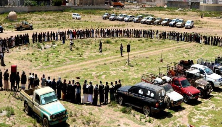 سير أبناء مديرية عنس بمحافظة ذمار اليوم، قافلة عينية دعما للمرابطين في الجبهات تحت شعار “أعيادنا جبهاتنا”.