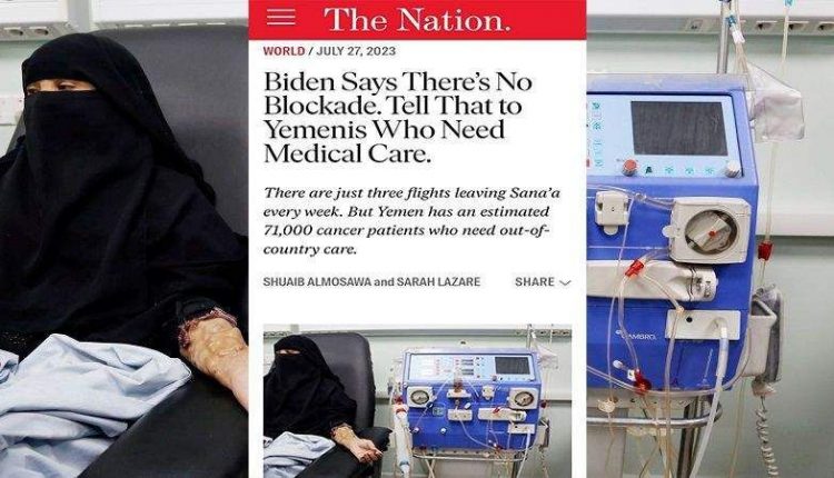 وقالت المجلة الأمريكية: إنّ هناك ثلاث رحلات جوية فقط تغادر صنعاء كل أسبوع، في حين أنّ هناك ما يقدر بـ 71 ألف مريض بالسرطان في اليمن يحتاجون إلى رعاية خارج البلاد.