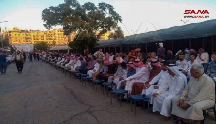 وجدد البيان التأكيد على “وقوف القبائل والعشائر والنخب الوطنية إلى جانب الدولة السورية وحلفائها والجيش العربي السوري، وأن سورية واحدة موحدة أرضاً وشعباً تحت قيادة السيد الرئيس بشار الأسد، وأن الجيش هو عزتها والمدافع عنها”.