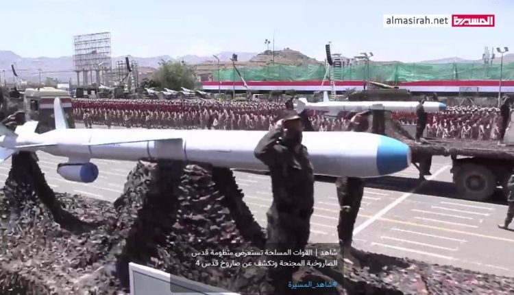 استعرضت القوات المسلحة اليوم الخميس، ضمن عرضها العسكري المهيب بمناسبة العيد التاسع لثورة الـ21 من سبتمبر، العديد من الأسلحة النوعية محلية الصنع، وكان من ضمنها صواريخ قدس 1، قدس 2، قدس 3 المجنحة وصاروخ قدس4.
