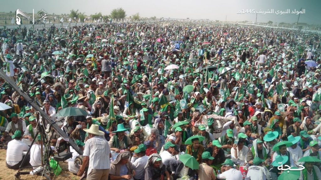 واعتبر أبناء حجة الحشد الأكبر والزخم الشعبي غير المسبوق، الاحتفال بذكرى ميلاد الرسول الأكرم، من الشعائر المقدسة التي يجب تعظيمها حباً وتوقيراً للنبي الخاتم الذي أرسله الله نوراً وهدى ورحمة للعالمين وشاهداً على وحدة اليمنيين وتلاحمهم واصطفافهم تحت راية سيد البشرية صلى الله عليه وآله وسلم.