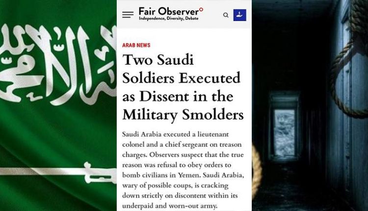 كشف موقع أمريكي عن سبب إقدام السلطات السعودية بإعدام طيارين اثنين من قواتها الجوية قبل أكثر من أسبوعين بتهمة الخيانة، حيث تتحدث مصادر في المعارضة السعودية إنهما أعدمانا بسبب رفضهما قصف أهداف مدنية في اليمن.