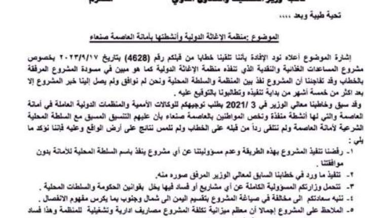 كشف وزير بحكومة المرتزقة عن فضيحة فساد جديدة بملايين الدولارات حول مشروع يتم تنفيذه بين احدى المنظمات ومزعوم سلطته .. في حين لم يصل إليه خبر المشروع الا بعد أكثر من خمسة اشهر من مزاعم تنفيذه.. الأمر الذي اغضبه.