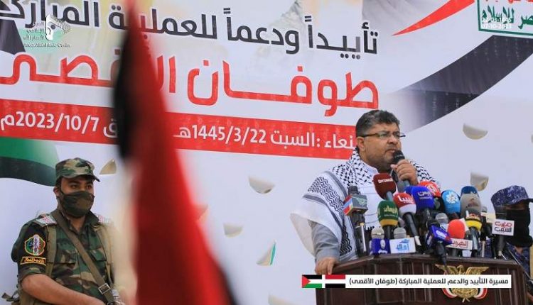 وقال الحوثي: إن “المسيرة الجماهيرية اليوم تعبير عن الموقف الشعبي اليمني الثابت تجاه القضية الفلسطينية، وأن الشعب اليمني سيواصل دعمه للمقاومة الفلسطينية حتى تحرير فلسطين”.