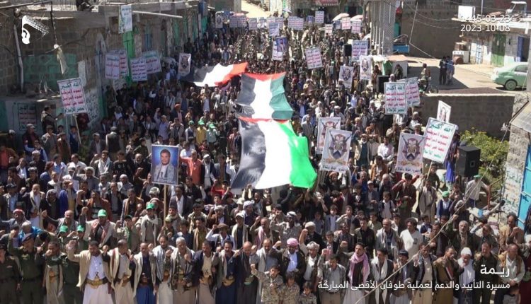 ريمة.. مسيرة جماهيرية حاشدة تأييدا لعملية طوفان الأقصى