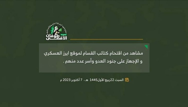 بالفيديو.. مشاهد جديدة لاقتحام موقع إيرز العسكري والإجهاز على جنود العدو وأسر عدد منهم On أكتوبر 8, 2023 الصمود| مشاهد جديدة من اقتحام كتائب القسام لموقع إيرز العسكري والإجهاز على جنود العدو وأسر عدد منهم ضمن معركة طوفان الأقصى https://www.alsomoud.com/wp-content/uploads/2023/10/بالفيديو..-مشاهد-جديدة-لاقتحام-موقع-إيرز-العسكري-والإجهاز-على-جنود-العدو-وأسر-عدد-منهم.mp4 مشاركة