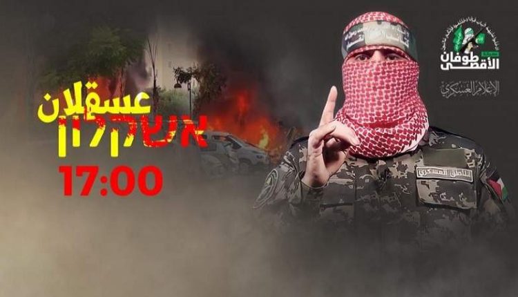 أمهل الناطق العسكري باسم كتائب القسام أبو عبيدة سكان مدينة عسقلان المحتلة بمغادرتها قبل الساعة الخامسة من مساء اليوم.
