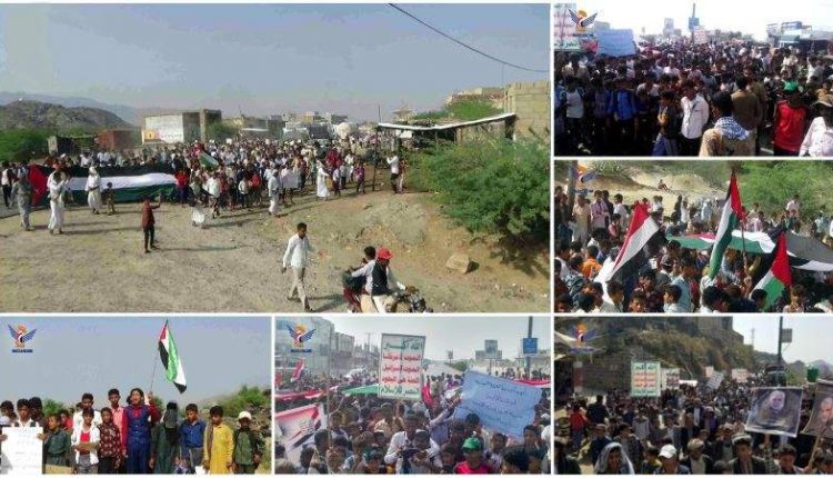 وحمّلت بيانات المسيرات، المجتمع الدولي وأمريكا وكل الأنظمة المساندة للكيان الصهيوني مسؤولية ما يتعرض له الفلسطينيون من انتهاكات صارخة لكل الاعراف والقوانين الدولية والإنسانية.