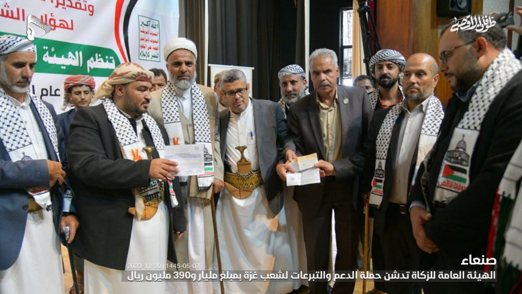 وأعلن عن إطلاق الهيئة وموظفيها حملة الدعم وجمع التبرعات لشعب غزة ومجاهديها بمبلغ مليار و390 مليون ريال، منها 390 مليون ريال قدمها موظفو ديوان عام الهيئة ومكاتبها بالمحافظات استجابة لتوجيهات القيادة الثورية والمجلس السياسي الأعلى وانتصارا للمقدسات والقضية الفلسطينية القضية المركزية للأمة.