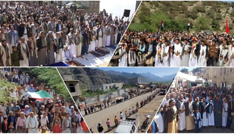 وجدد أبناء مركز محافظة ريمة والمديريات في المسيرات والوقفات، التأكيد على استمرار دعم الشعب الفلسطيني في معركته المصيرية ضد العدو الصهيوني.