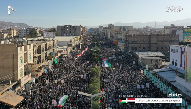 ورفعت الحشود المشاركة في المسيرة الشعارات المعبرة عن موقف الشعب اليمني المساند والداعم للمقاومة الفلسطينية في اتخاذ كل الخيارات المناسبة لردع العدو الصهيوني الذي استأنف عدوانه الوحشي والبربري على قطاع غزة مرتكبا المزيد من المجازر بحق الأطفال والنساء.