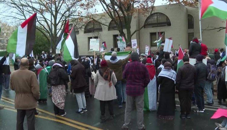 تظاهرة أمام سفارة كيان العدو في واشنطن تضامنًا مع غزة وتنديدًا بالعدوان عليها