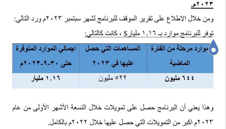 وثائقُ تكشفُ حصولَ البرنامج على تمويل للعام الجاري بمليار و160 مليون دولار في ظل توقف توزيعها