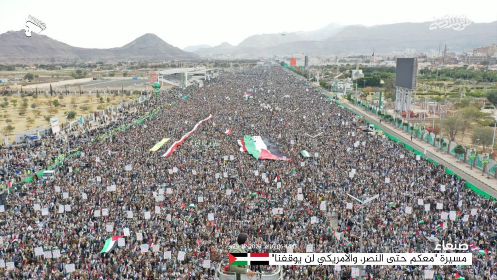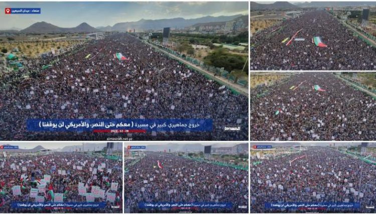وتابع “نحن في اليمن نعلنها بوضوح وبصراحة تامة بأننا سنواصل السير خلف قائد الثورة من أجل الانتصار القادم بإذن الله، وهذه الحشود المليونية ستقف إلى جانب أهلنا في غزة والضفة الغربية، لتتحرر فلسطين من العدو الصهيوني الذي بسط على أرضها لأكثر من 75 عاما”.