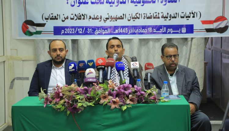 عُقدت بصنعاء اليوم الندوة الحقوقية الدولية بعنوان “الآليات الدولية لمقاضاة الكيان الصهيوني وعدم الإفلات من العقاب”، نظمتها وزارة حقوق الإنسان.