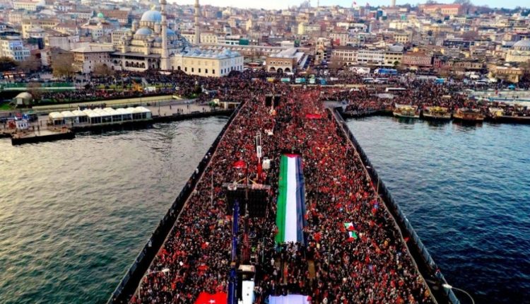 مظاهرة حاشدة في أول يوم من 2024 تضامنا مع غزة بإسطنبول