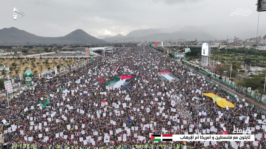 وأعلنت الحشود غير المسبوقة النفير العام للجهاد في مواجهة أعداء الأمة وفي مقدمتهم الشيطان الأكبر ورعاة الإرهاب أمريكا وبريطانيا والكيان الصهيوني، دفاعا عن مقدسات الأمة وانتصارا لمظلومية الشعب الفلسطيني.