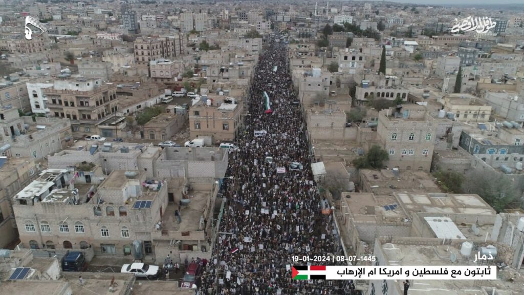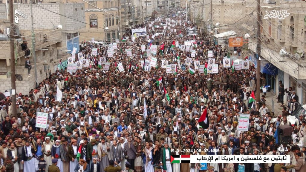 وفي المسيرة التي تقدمها أعضاء من مجلس الشورى وقيادة السلطة المحلية والمكاتب التنفيذية والشخصيات الاجتماعية، أكد المشاركون على استمرار الأنشطة الشعبية والرسمية والسياسية والإعلامية والتعبئة الجهادية والعمليات العسكرية المناصرة للشعب الفلسطيني والتصدي للعدوان الأمريكي البريطاني، بكل الإمكانات المتاحة حتى إيقاف العدوان ورفع الحصار على الشعب الفلسطيني في غزة والأراضي المحتلة.