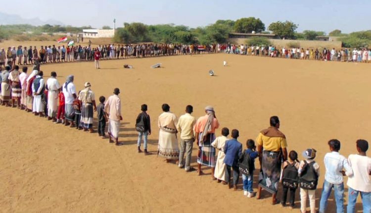 وهتف المشاركون في الوقفة التي شاركت فيها قيادة السلطة المحلية بالمديرية وعدد من القيادات بشعارات التأييد والتفويض لقائد الثورة والقوات المسلحة في اتخاذ خيارات مواجهة القوى الاستعمارية، والتصدي لكل مخططاتها، والجهوزية والاستعداد للمشاركة في معركة مواجهة أعداء اليمن والأمة.