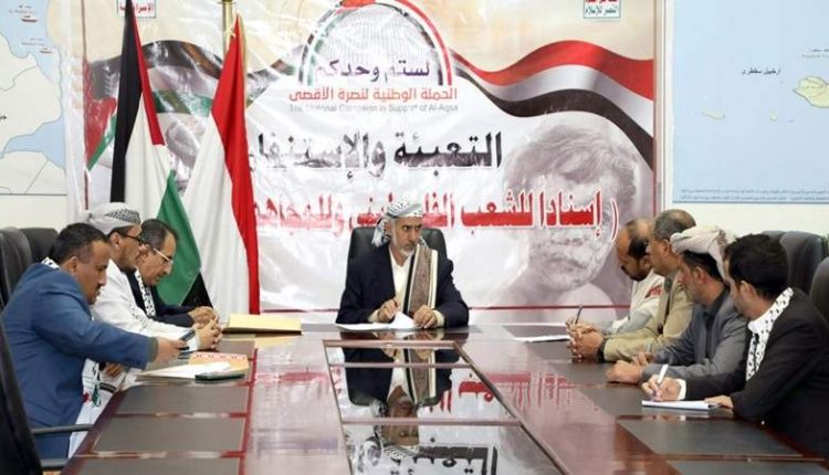 ناقشت اللجنة العليا لنصرة الأقصى والقضية الفلسطينية في اجتماعها اليوم الأربعاء بصنعاء برئاسة مستشار رئيس المجلس السياسي الأعلى العلامة محمد مفتاح، عدداً من المواضيع المدرجة في جدول أعمالها ذات صلة بمسار التعبئة والاستنفار نصرة لفلسطين وأبنائها.