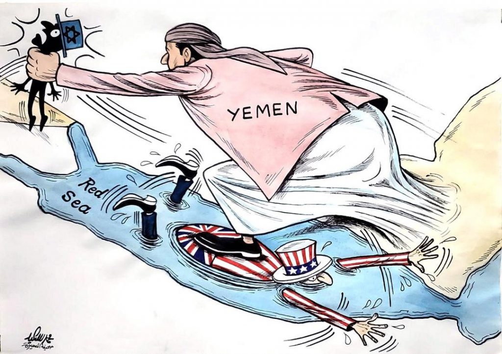 شاهد.. الطوفان اليمني يغرق الأمريكي والبريطاني في البحر الأحمر ويشد الخناق على الكيان الصهيوني بخطوة واحدة (صورة) شاهد.. الطوفان اليمني يغرق الأمريكي والبريطاني في البحر الأحمر ويشد الخناق على الكيان الصهيوني بخطوة واحدة (صورة) On يناير 29, 2024 الصمود| كاريكاتير مشاركة