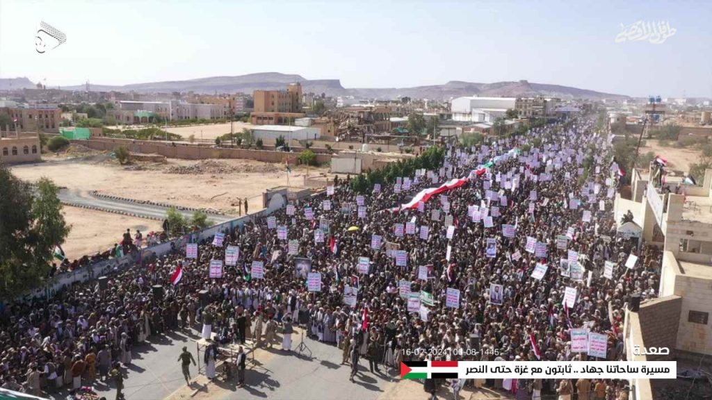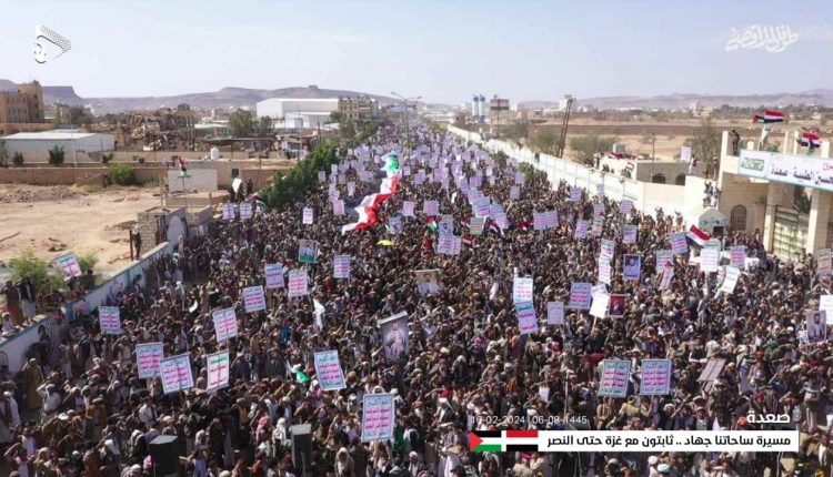 11 مسيرة جماهيرية بصعدة تحت شعار “ساحاتنا جهاد ..ثابتون مع غزة حتى النصر”