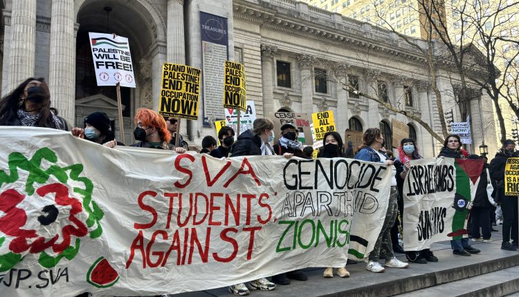 ورفع المشاركون في المسيرة التي جابت شوارع مدينة نيويورك، العلم الفلسطيني ورددوا الشعارات المطالبة بالحرية للشعب الفلسطيني فيما انضم آلاف النشطاء الى مسيرة الطلبة.