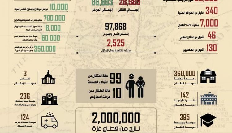 شاهد.. إحصائية 135 يوم من عدوان الاحتلال الإسرائيلي الصهيوني على قطاع غزة في فلسطين (انفوجرافيك)