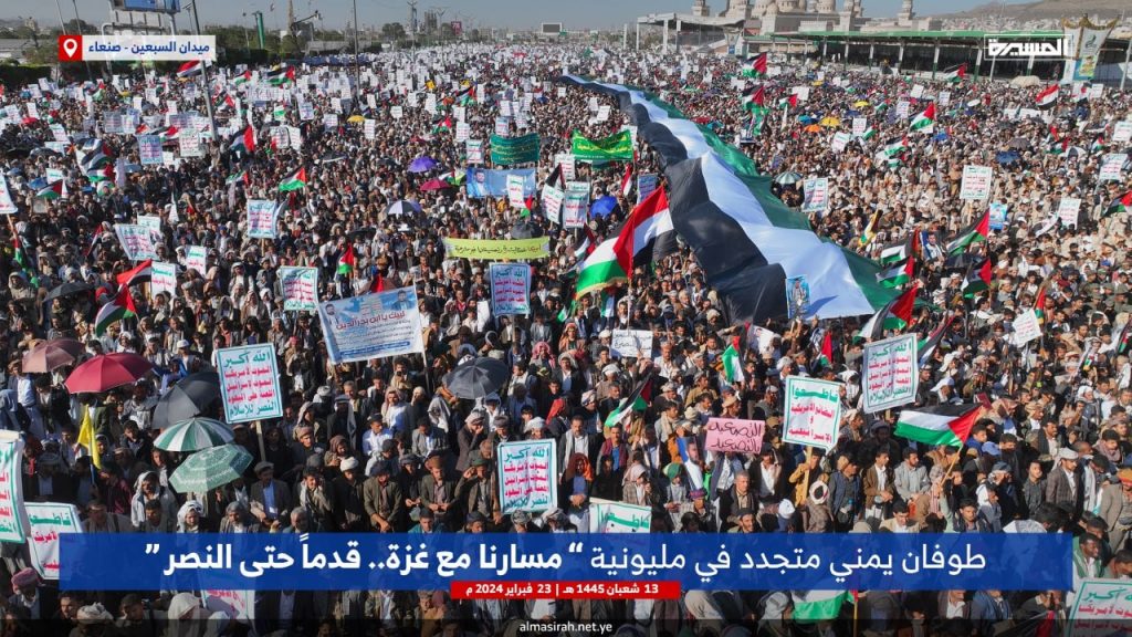 شاهد.. طوفان يمني متجدد في مليونية “مسارنا مع غزة.. قدما حتى النصر” بـ ميدان السبعين في العاصمة صنعاء (صور)